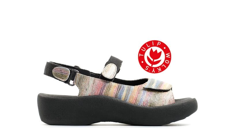 Im Jahr 2001 folgt die Lancierung des Jewel. Ein Schuh aus Wolkys Tulip-Kollektion und weltweit eines der meistverkauften Modelle von Wolky. Die Tulip-Kollektion verwendet als Wiedererkennungssymbol die abgebildeten Tulpen auf der Sohle. Zeitlos und mit unvergleichlichem Komfort dank der Abrollsohle, des herausnehmbaren Korkfußbettes und der vollständigen Verstellbarkeit.