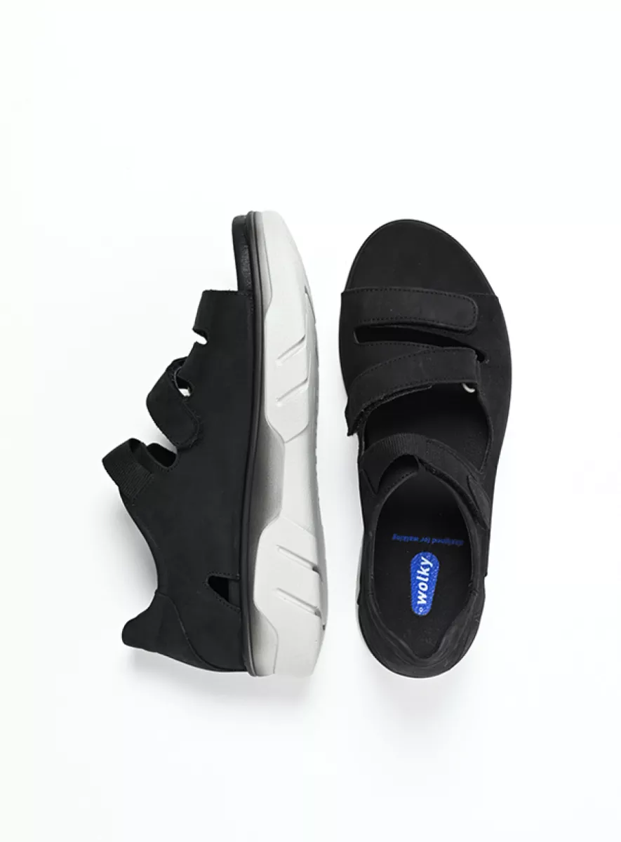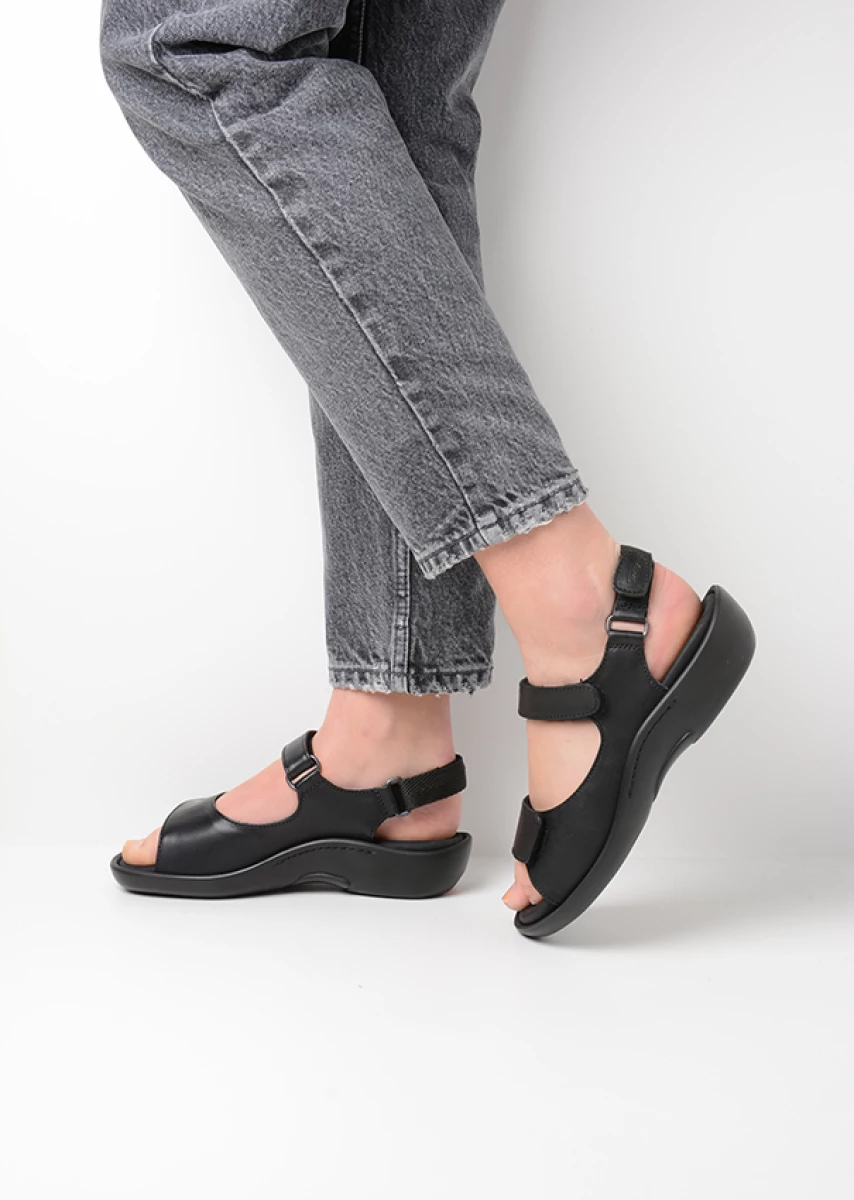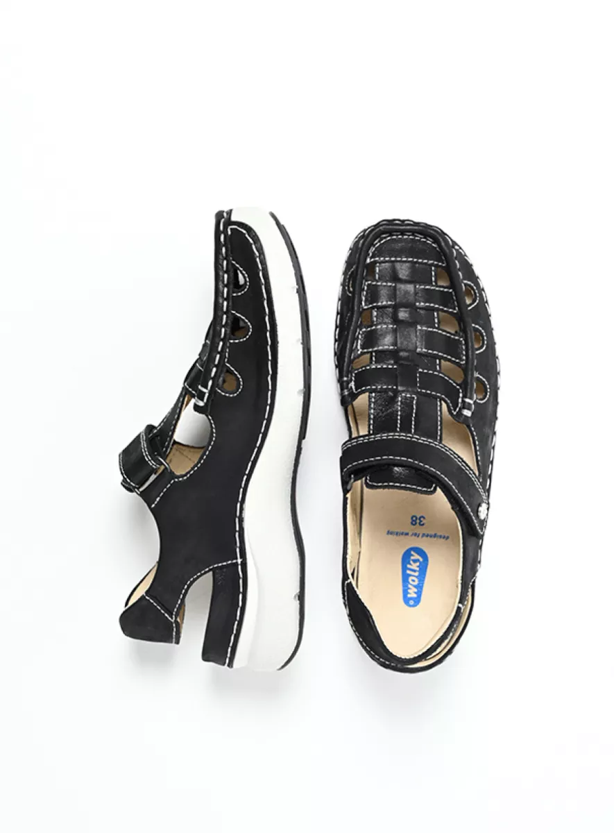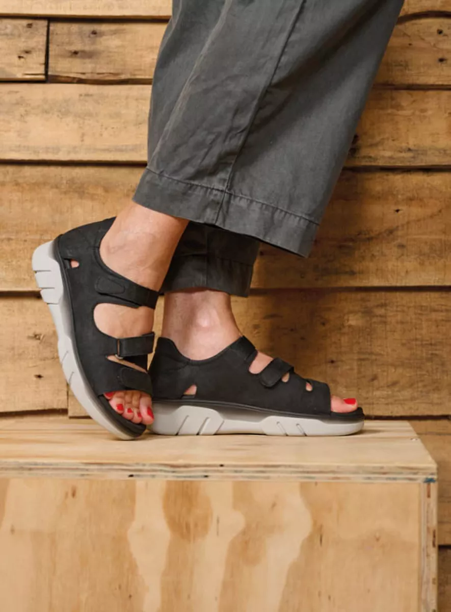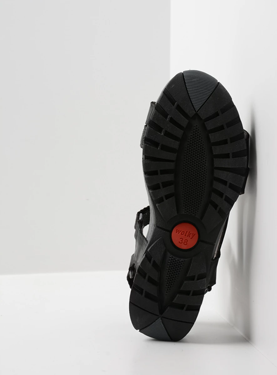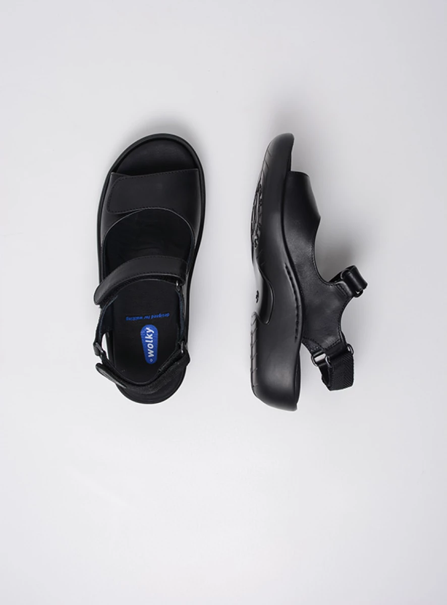 Ob elegant, sportlich oder im angesagten Retro-Look – Ihre neuen schwarzen Lieblingssandalen warten bereits auf Sie. Alle Modelle lassen sich mit Klettverschlüssen an die Form Ihre Füße anpassen und sind mit dem bewährten Wolky-Fußbett ausgestattet. Erleben Sie maximalen Komfort bei jedem Schritt!