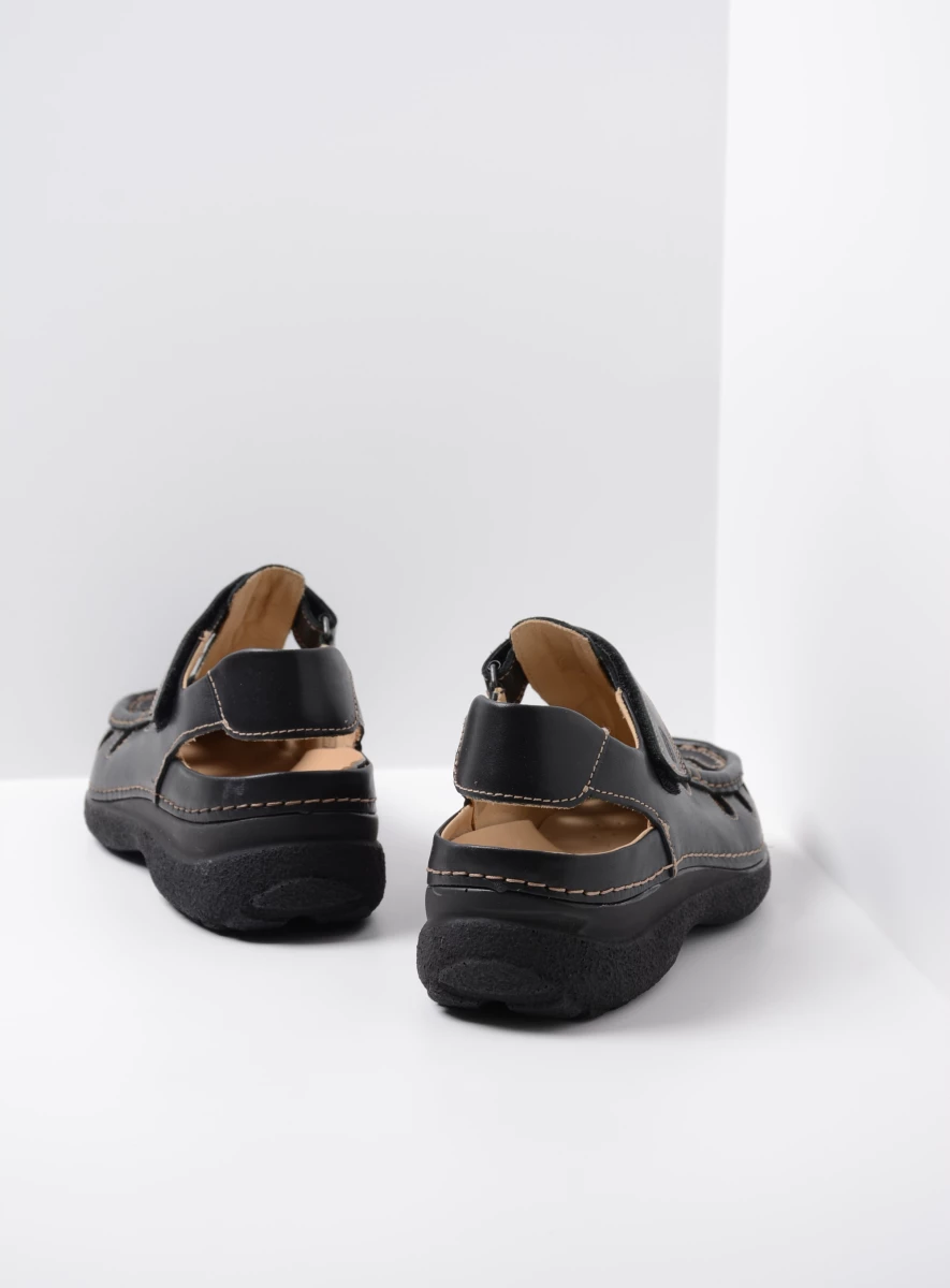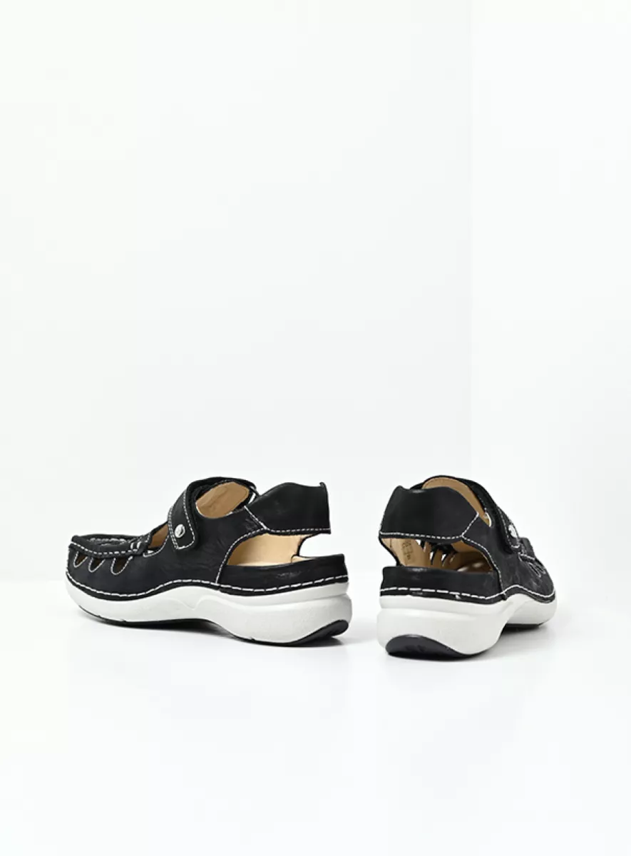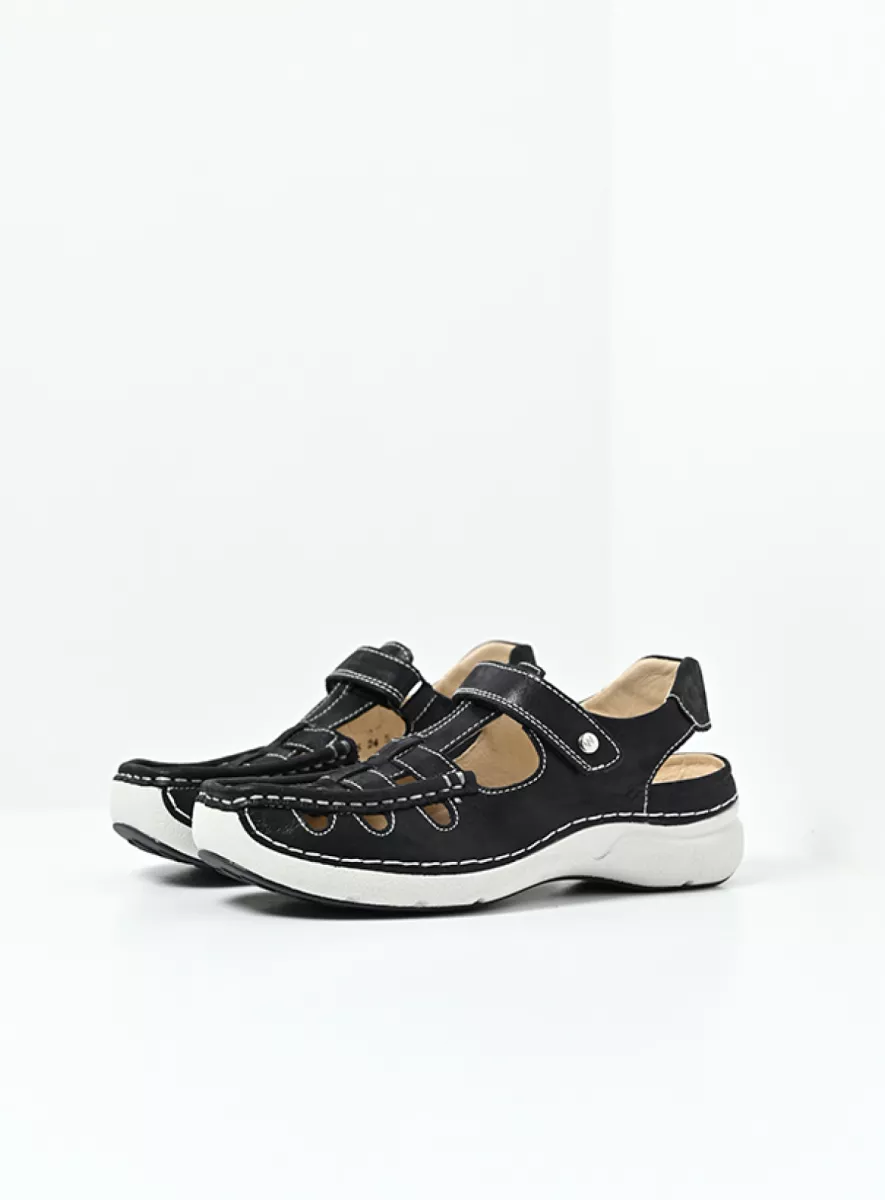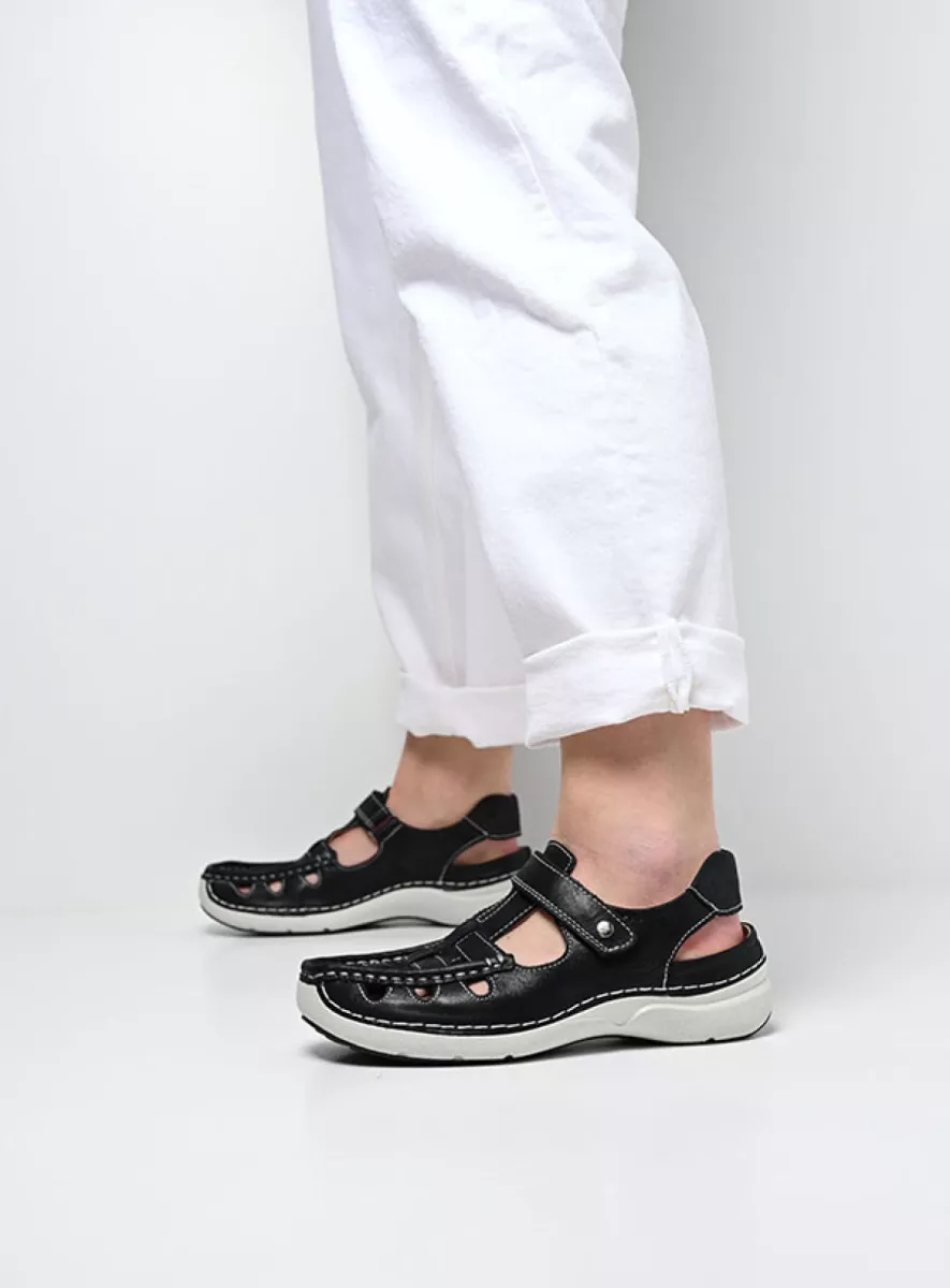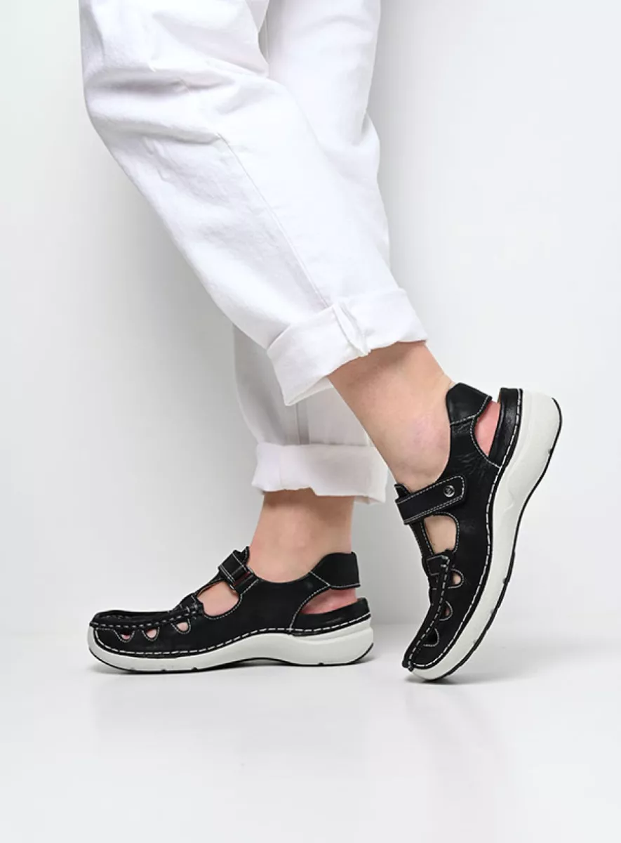 Ob elegant, sportlich oder im angesagten Retro-Look – Ihre neuen schwarzen Lieblingssandalen warten bereits auf Sie. Alle Modelle lassen sich mit Klettverschlüssen an die Form Ihre Füße anpassen und sind mit dem bewährten Wolky-Fußbett ausgestattet. Erleben Sie maximalen Komfort bei jedem Schritt!