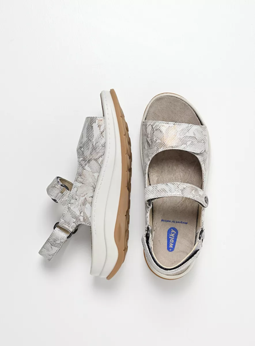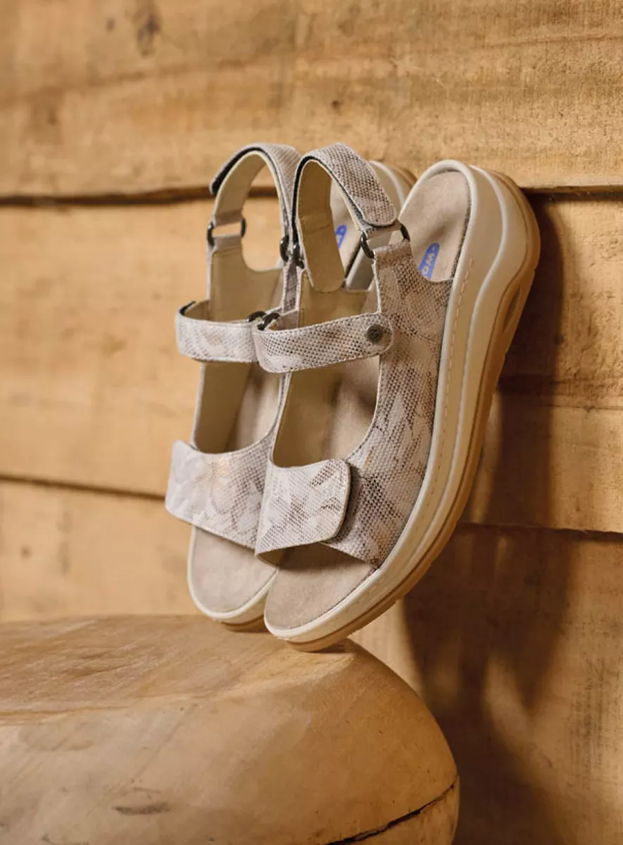 Der Adura ist eine fantastische Sandale. Die Sohle ist besonders leicht und so geformt, dass der Fuß korrekt abgerollt wird. Das Fußbett ist ein typisches Wolky-Fußbett aus drei Schichten: Zuerst eine Schicht Kork für die Stabilität. Dann eine Schicht Memory Foam für eine hervorragende Dämpfung. Und abschließend herrlich weiches Veloursleder. Die geschlossenen Seiten bieten zusätzliche Unterstützung und Stabilität. Die Sandale ist an drei Punkten verstellbar – so wissen Sie sicher, dass Sie den Adura perfekt an Ihre Füße anpassen können. Sie verwenden orthopädische Einlagen? Auch dann ist diese Sandale ideal, denn das Fußbett kann herausgenommen werden. Für alle Fälle gerüstet!