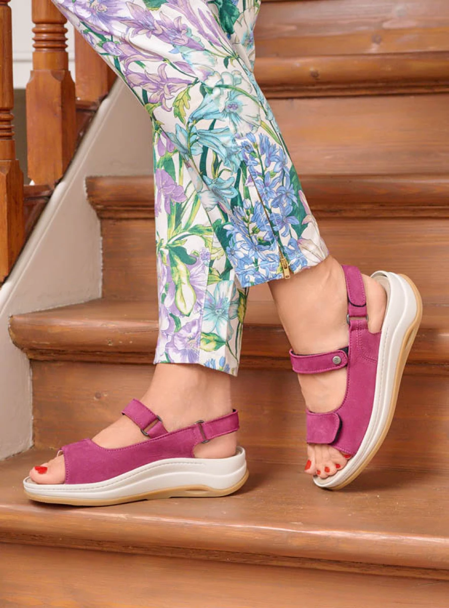 Der Adura ist eine fantastische Sandale. Die Sohle ist besonders leicht und so geformt, dass der Fuß korrekt abgerollt wird. Das Fußbett ist ein typisches Wolky-Fußbett aus drei Schichten: Zuerst eine Schicht Kork für die Stabilität. Dann eine Schicht Memory Foam für eine hervorragende Dämpfung. Und abschließend herrlich weiches Veloursleder. Die geschlossenen Seiten bieten zusätzliche Unterstützung und Stabilität. Die Sandale ist an drei Punkten verstellbar – so wissen Sie sicher, dass Sie den Adura perfekt an Ihre Füße anpassen können. Sie verwenden orthopädische Einlagen? Auch dann ist diese Sandale ideal, denn das Fußbett kann herausgenommen werden. Für alle Fälle gerüstet!