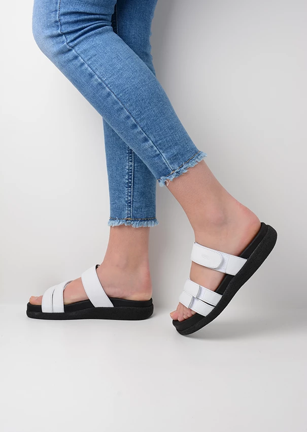 Diese klassische Pantolette ist aus unserer Sommerkollektion nicht mehr wegzudenken. Mit den drei Klettverschlüssen – zwei am Vorfuß und einem auf dem Spann – können Sie die Pantolette perfekt an Ihren Fuß anpassen. Das Korkfußbett wurde mit einer Schaumstoffschicht und dann mit Leder bezogen. So profitieren Sie von der Unterstützung durch Kork und der Weichheit von Memory-Foam. Da der Cirrus einen raffinierten Look hat, können Sie sie sowohl mit Hosen als auch mit Kleidern prima kombinieren!