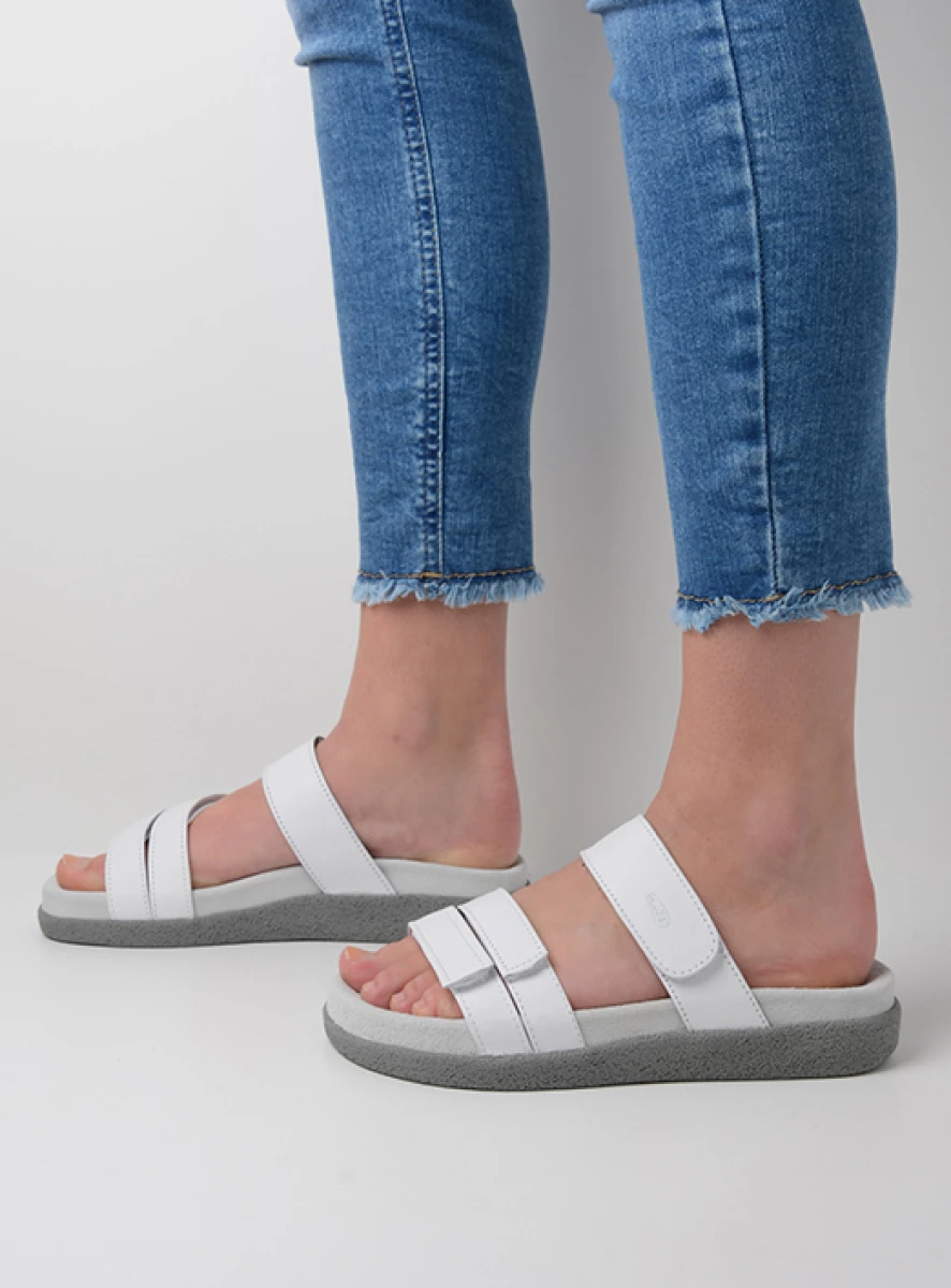 Diese klassische Pantolette ist aus unserer Sommerkollektion nicht mehr wegzudenken. Mit den drei Klettverschlüssen – zwei am Vorfuß und einem auf dem Spann – können Sie die Pantolette perfekt an Ihren Fuß anpassen. Das Korkfußbett wurde mit einer Schaumstoffschicht und dann mit Leder bezogen. So profitieren Sie von der Unterstützung durch Kork und der Weichheit von Memory-Foam. Da der Cirrus einen raffinierten Look hat, können Sie sie sowohl mit Hosen als auch mit Kleidern prima kombinieren!
