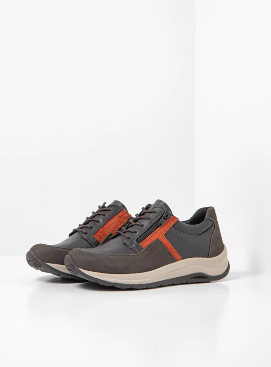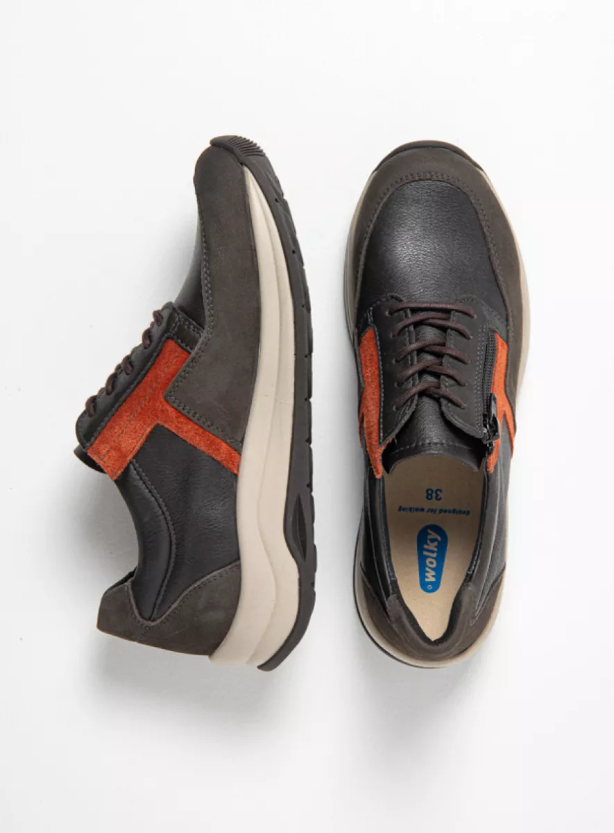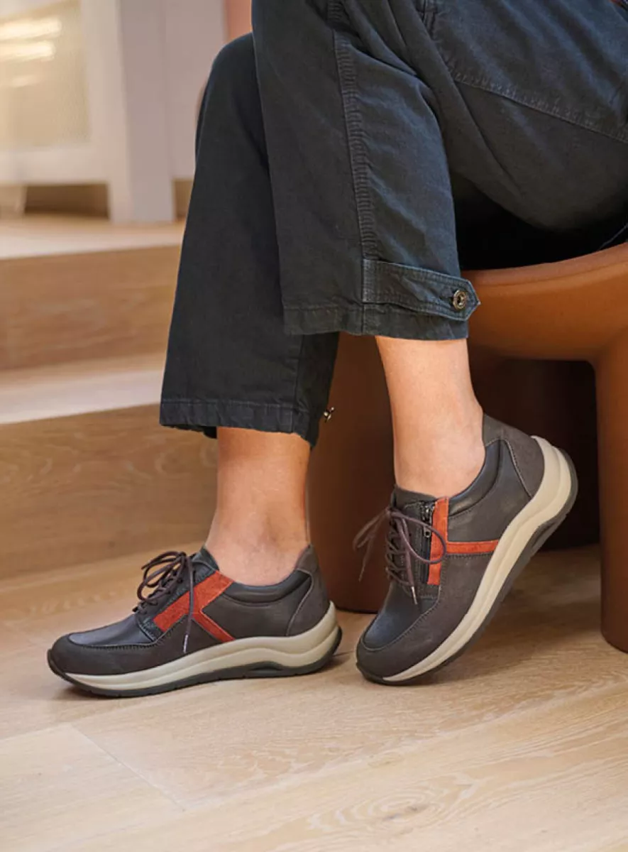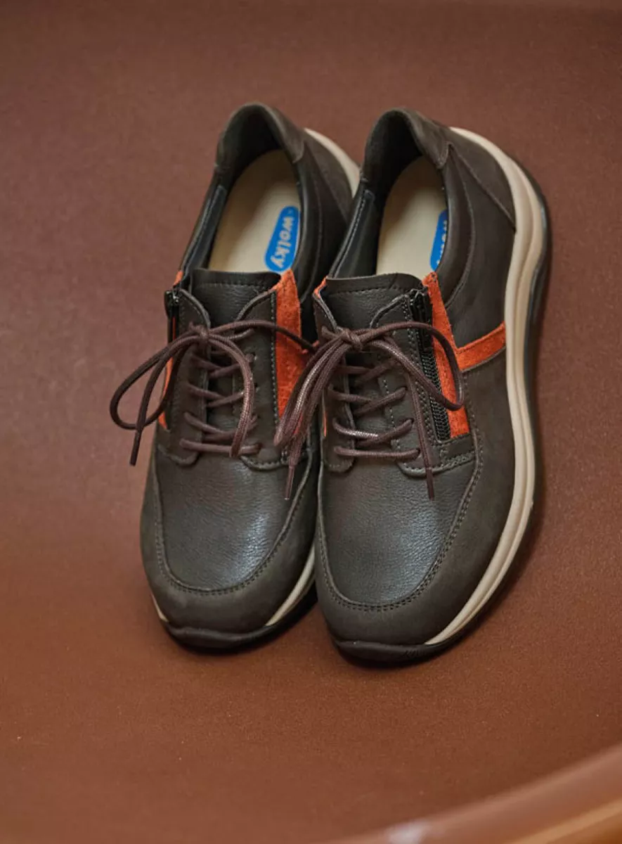 Mit diesem lässigen niedrigen Schnürschuh geht das Laufen wie von selbst. Der Comrie ist nämlich mit einer einzigartigen Sohle ausgestattet: Diese ist dämpfend und weist an der Spitze leicht nach oben, wodurch das Abrollen des Fußes auf subtile Weise stimuliert wird. Das Obermaterial dieses Wolky-Schnürschuhs besteht aus Leder mit einer „Derby-Schnürung“, die sich weiter öffnen lässt und dadurch den Einstieg erleichtert. Diese Schnürung ist auch für vollere Füße bzw. Füße mit einem hohen Spann geeignet, denn die Schuhe bieten auch dann noch genügend Unterstützung und Halt, wenn die Schnürsenkel etwas lockerer gebunden werden. Durch die Kombination von Schnürung und Reißverschluss lässt sich der Schuh schnell an- und ausziehen. Sie haben Lust auf einen erfrischenden Spaziergang? Dafür sind Sie im Handumdrehen fertig angezogen!