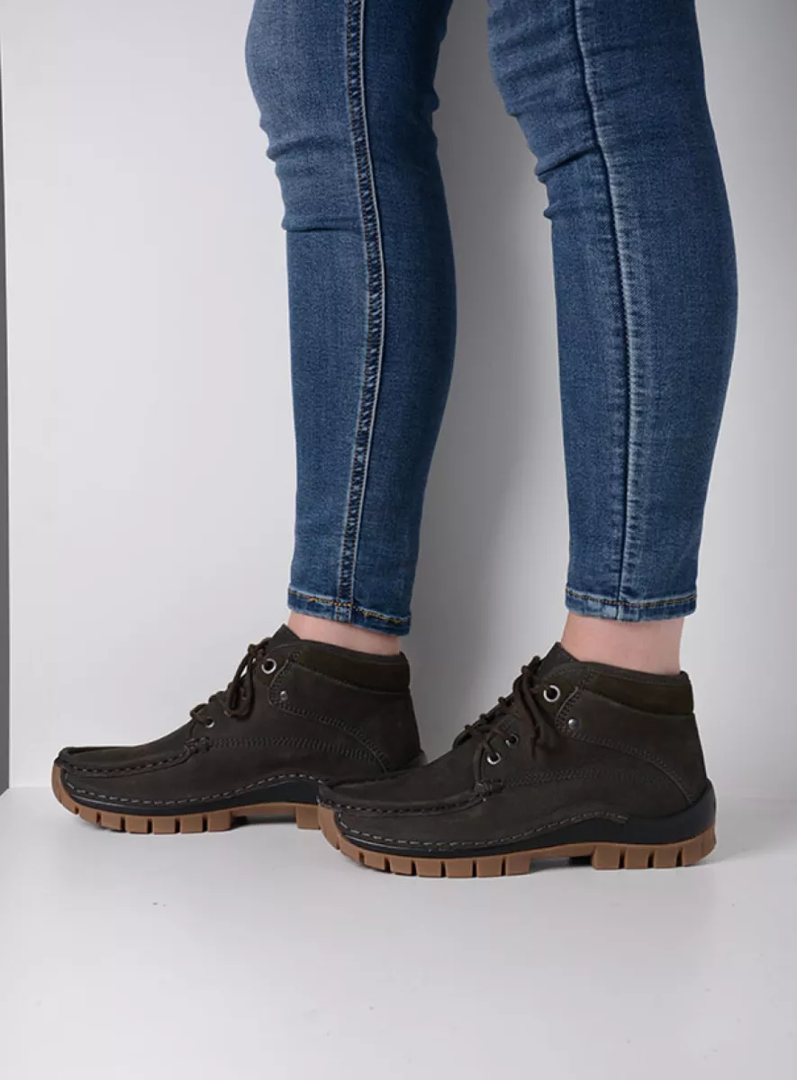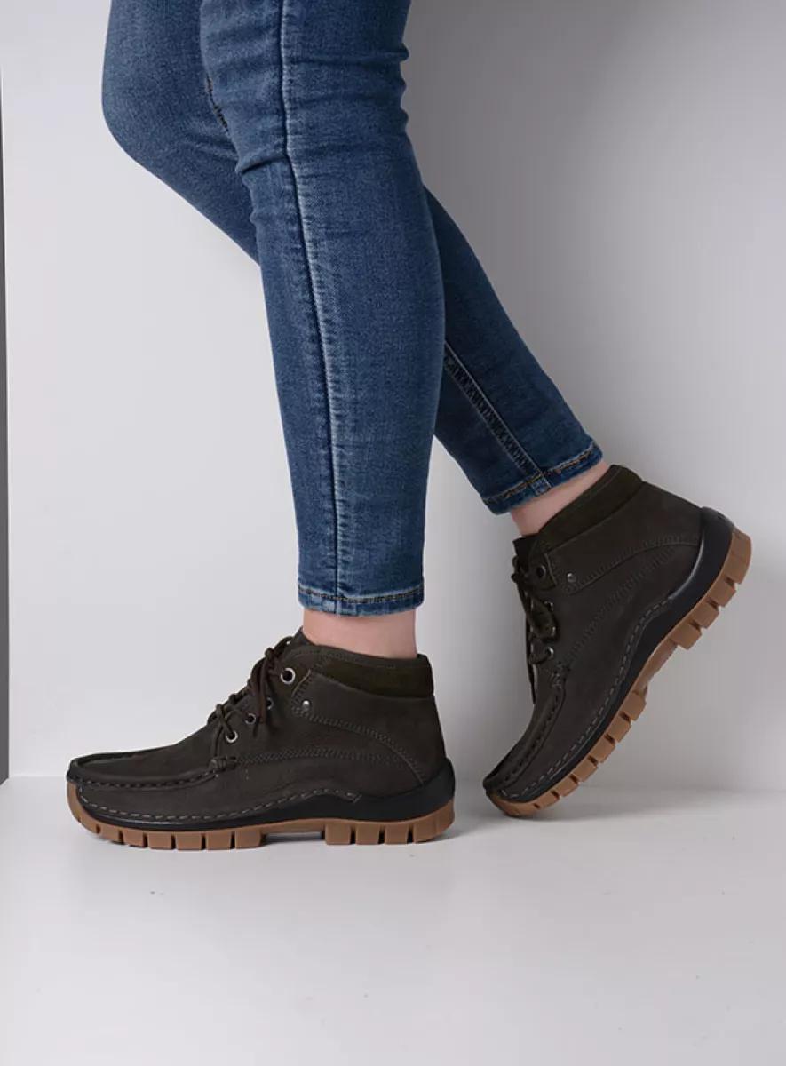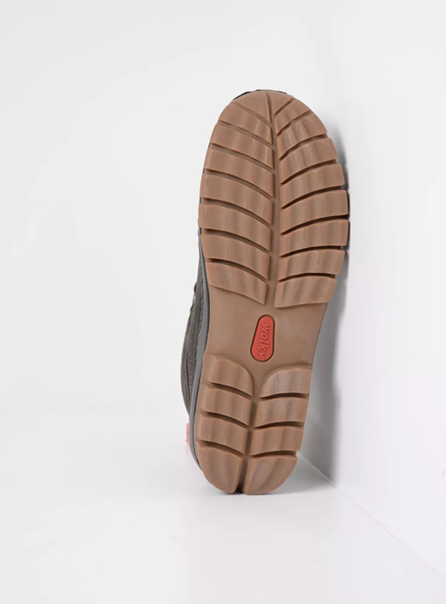 Dieser winterliche Schnürschuh hat alles: ein durchdachtes Design, wunderschöne Farbkombinationen und eine spezielle Sohle, die für ein Laufgefühl wie auf Wolken sorgt. Oben am Schaft sehen Sie eine Verdickung: Dieser gepolsterte Rand sorgt dafür, dass sich der Cross angenehm weich anfühlt und nicht in den Knöchel einschneiden kann. Die Naht an der Zehenkappe verrät die Mokassin-Machart, für die Wolky so berühmt ist. Da sich diese Nähte am und nicht im Schuh befinden, spüren Sie dort keine störenden Kanten und Nähte. Sprühen Sie den Schuh regelmäßig ein, damit Ihre Füße auch bei starkem Regen trocken bleiben. Sie besitzen eigene Einlegesohlen? Auch dann ist dieser Schnürschuh die perfekte Wahl. Das anatomisch geformte Fußbett ist herausnehmbar, sodass Sie Ihre eigenen Sohlen verwenden können. Mit dem Cross ist stundenlanges Wandervergnügen garantiert. Klicken Sie hier, um den Schuh auf dem Catwalk zu sehen >>