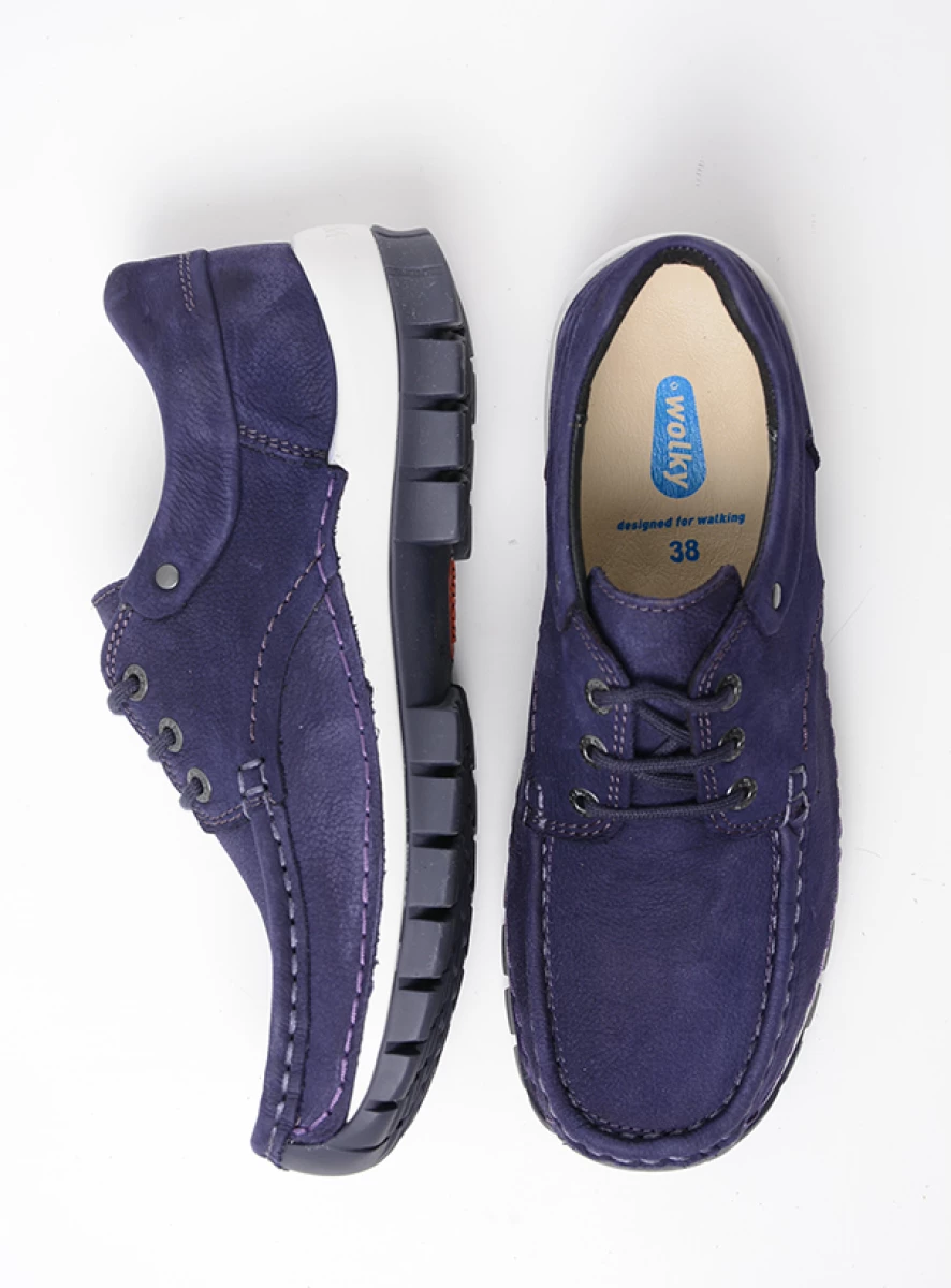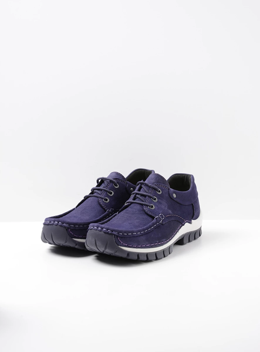 Verlassen Sie Ihr Haus mit Wolkys Fly mit Stil! Dieser lässige Schnürhalbschuh hat eine tolle Farbkombination mit einem extra verspielten Effekt, der es so aussehen lässt, als wäre das Leder am Knöchel umgeschlagen. Der Fly ist durch die Zweikomponentensohle besonders bequem. Die Zwischensohle ist aus PU, was den Schuh leicht macht, und der untere Teil der Sohle ist aus TR. Dies sorgt für die Dämpfung und die Biegsamkeit. Außerdem hat Wolkys Fly eine Mokassin-Naht, die für zusätzliche Flexibilität sorgt.