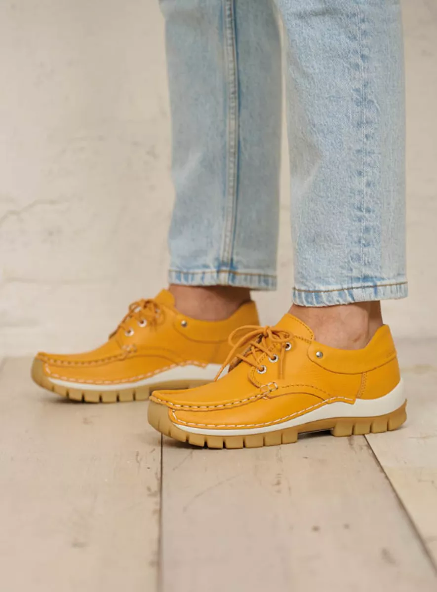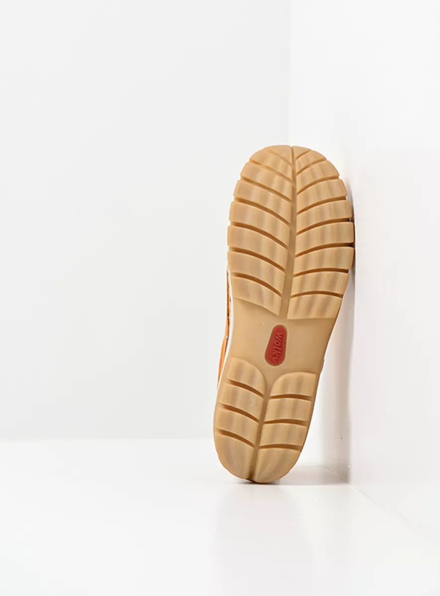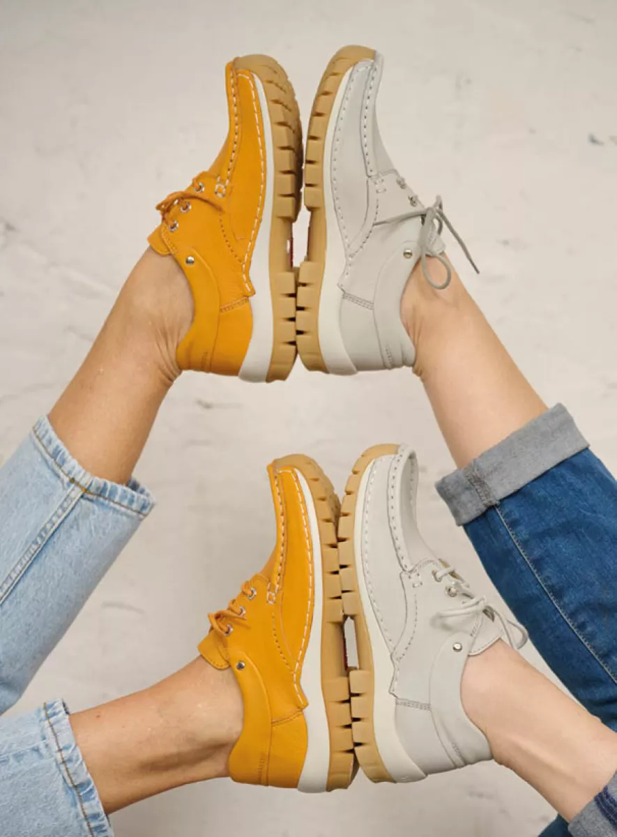 Verlassen Sie Ihr Haus mit Wolkys Fly Summer mit Stil! Dieser lässige Schnürhalbschuh hat eine tolle Farbkombination mit einem extra verspielten Effekt, der es so aussehen lässt, als wäre das Leder am Knöchel umgeschlagen. Der Fly ist durch die Zweikomponentensohle besonders bequem. Die Zwischensohle ist aus PU, was den Schuh leicht macht, und der untere Teil der Sohle ist aus TR. Dies sorgt für die Dämpfung und die Biegsamkeit. Außerdem hat Wolkys Fly eine Mokassin-Naht, die für zusätzliche Flexibilität sorgt.