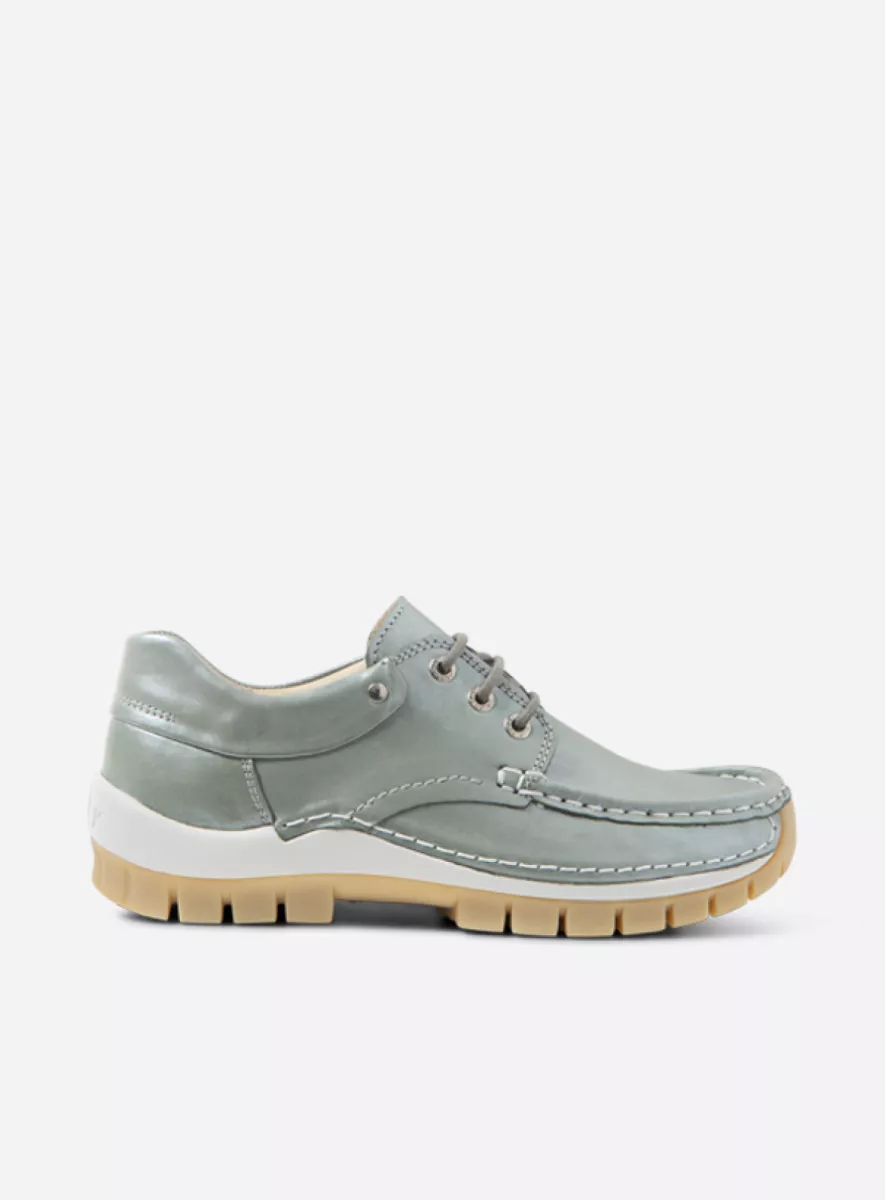Verlassen Sie Ihr Haus mit Wolkys Fly Summer mit Stil! Dieser lässige Schnürhalbschuh hat eine tolle Farbkombination mit einem extra verspielten Effekt, der es so aussehen lässt, als wäre das Leder am Knöchel umgeschlagen. Der Fly ist durch die Zweikomponentensohle besonders bequem. Die Zwischensohle ist aus PU, was den Schuh leicht macht, und der untere Teil der Sohle ist aus TR. Dies sorgt für die Dämpfung und die Biegsamkeit. Außerdem hat Wolkys Fly eine Mokassin-Naht, die für zusätzliche Flexibilität sorgt.