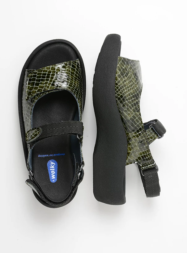 Der Jewel ist Wolkys beliebteste Sandale. Sie hat drei Klettverschlüsse: am Vorfuß, auf dem Spann und um den Knöchel. Die Sohle sieht ein bisschen wie ein traditioneller holländischer Holzschuh aus. Sie ist enorm stabil und unterstützend. Eben dadurch wird das richtige Abrollen des Fußes gefördert. Dank des herausnehmbaren, anatomisch geformten Korkfußbetts erfahren Ihre Füße den ganzen Tag über optimalen Komfort. Der Jewel ist in vielen Farben und Prints erhältlich. Ganz bestimmt gibt es auch eine Variante für Sie! PS: Haben Sie den Jewel schon und möchten Sie nur Ihre Fußbetten austauschen? Dann können Sie diese auch separat bekommen. So haben Sie für wenig Geld wieder neue Schuhe! Suchen Sie einfach auf der Website nach „Tulip Einlegesohlen“.