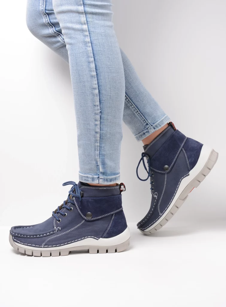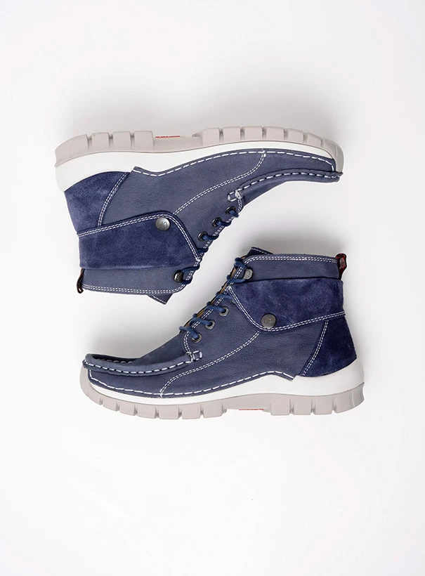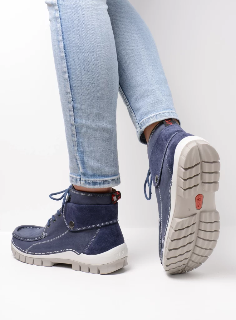 Gönnen Sie Ihren Füßen diesen Wolky Schnürhalbschuh, den Jump. Dank des schönen Designs und der tollen Farbkombination wirkt der Schnürschuh besonders verspielt und sieht es so aus, als wäre das Leder am Knöchel umgeschlagen. Aber auch die Sohle ist einzigartig! Sie besteht nämlich aus zwei Komponenten. Die Zwischensohle ist aus PU, was den Schuh unglaublich leicht macht, und das Sohlenprofil ist aus TR. Das macht den Schuh dämpfend und verschleißfest. Der perfekte Schnürschuh für ausgedehnte Wanderungen!
