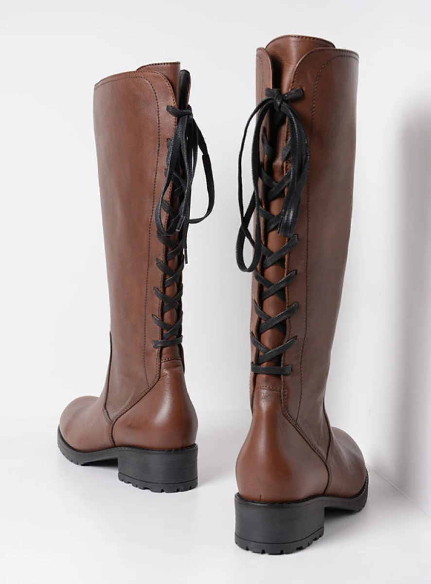 Hoher Stiefel mit Schnürung und Reißverschluss