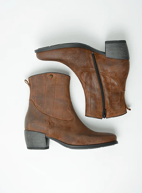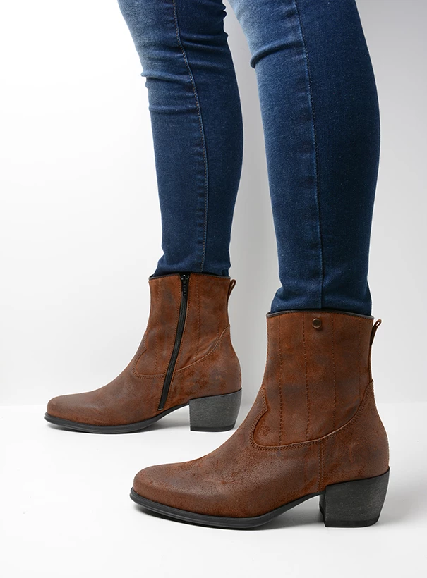 Setzen Sie mit Wolkys Lubbock auf einen markanten Western-Look! Wolkys Lubbock ist eine hippe Cowboystiefelette mit einem Reißverschluss an der Innenseite und schönen Ziernähten am Schaft. Dank der schönen spitzen Nase und der Linienführung der Stiefelette wirken Ihre Füße schlanker, ohne dass sie drücken. Wolkys Lubbock hat ein bequemes Fußbett und eine Schaumschicht in der Sohle. Verwenden Sie eigene Einlegesohlen? Legen Sie sie auf die Schaumschicht. So bekommen Sie mit Ihren maßgefertigten Einlegesohlen noch mehr Komfort. Tragen Sie den Lubbock ultra-feminin zu einem Rock oder Kleid oder gewagt zu Jeans!