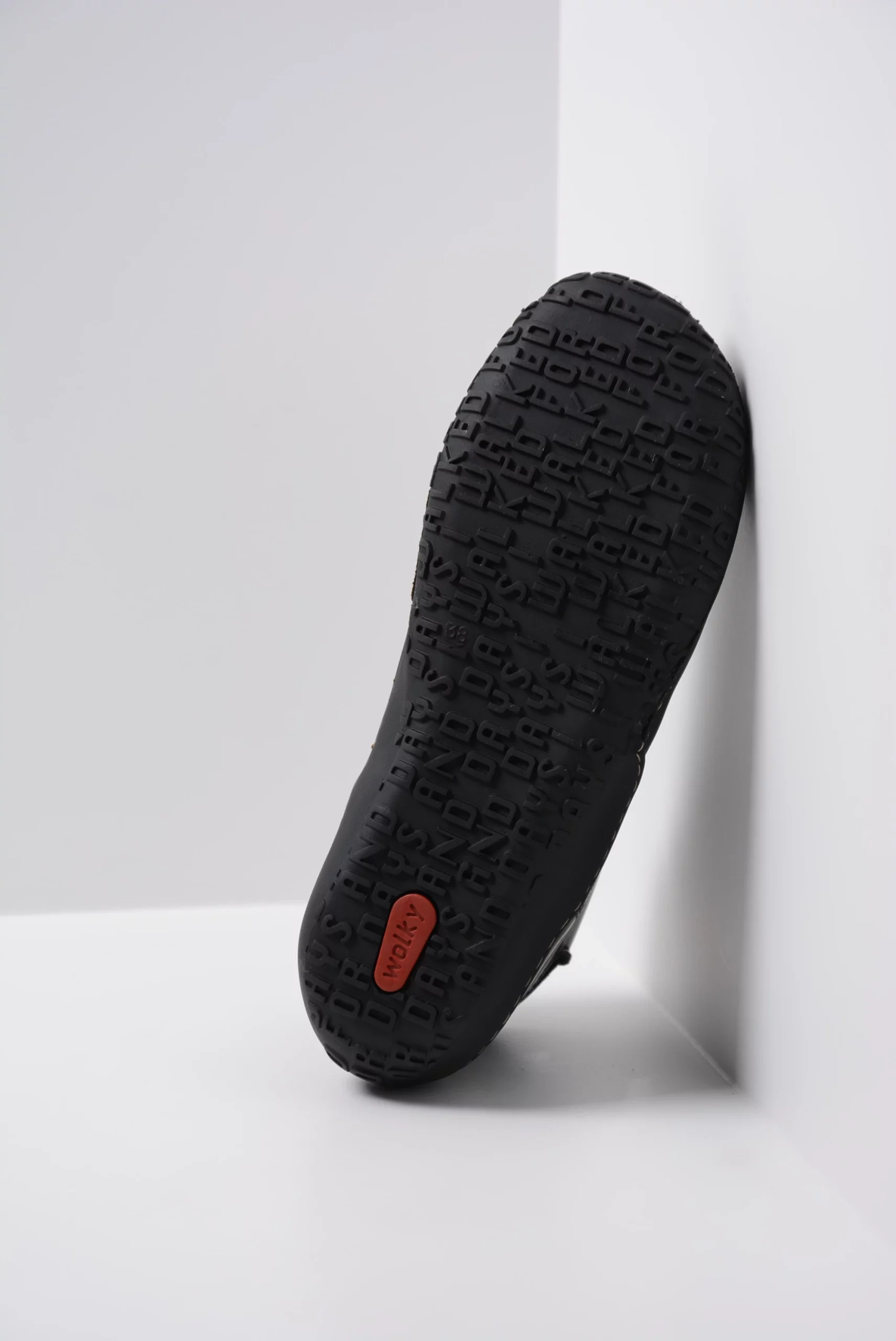 • Geeignet für volle Füße und Füße mit höherem Spann. Aufgrund der runden Schuhspitze gibt es reichlich Platz im Zehenbereich (Richtlinie Schuhweite H+). Wenn Sie das Fußbett durch ein dünneres ersetzen, erhalten Sie sogar Richtlinie Schuhweite K