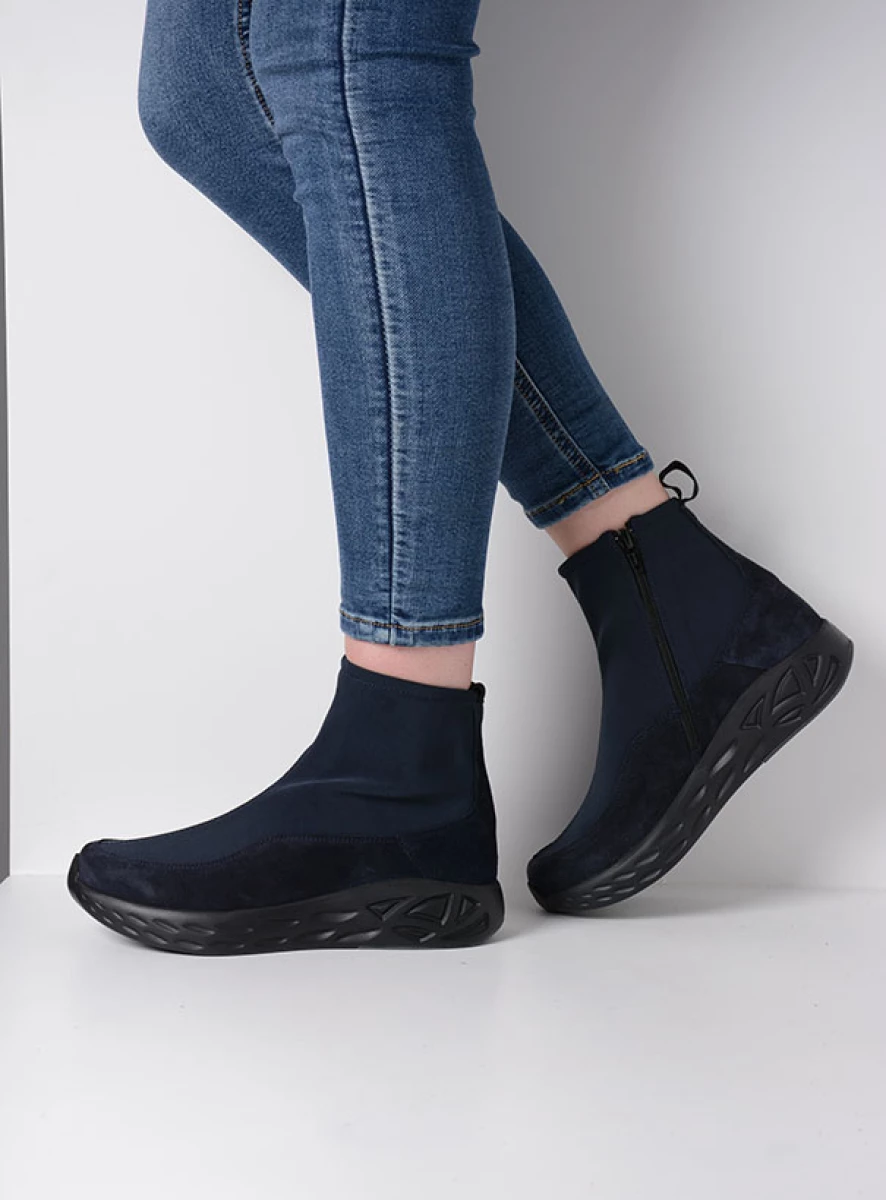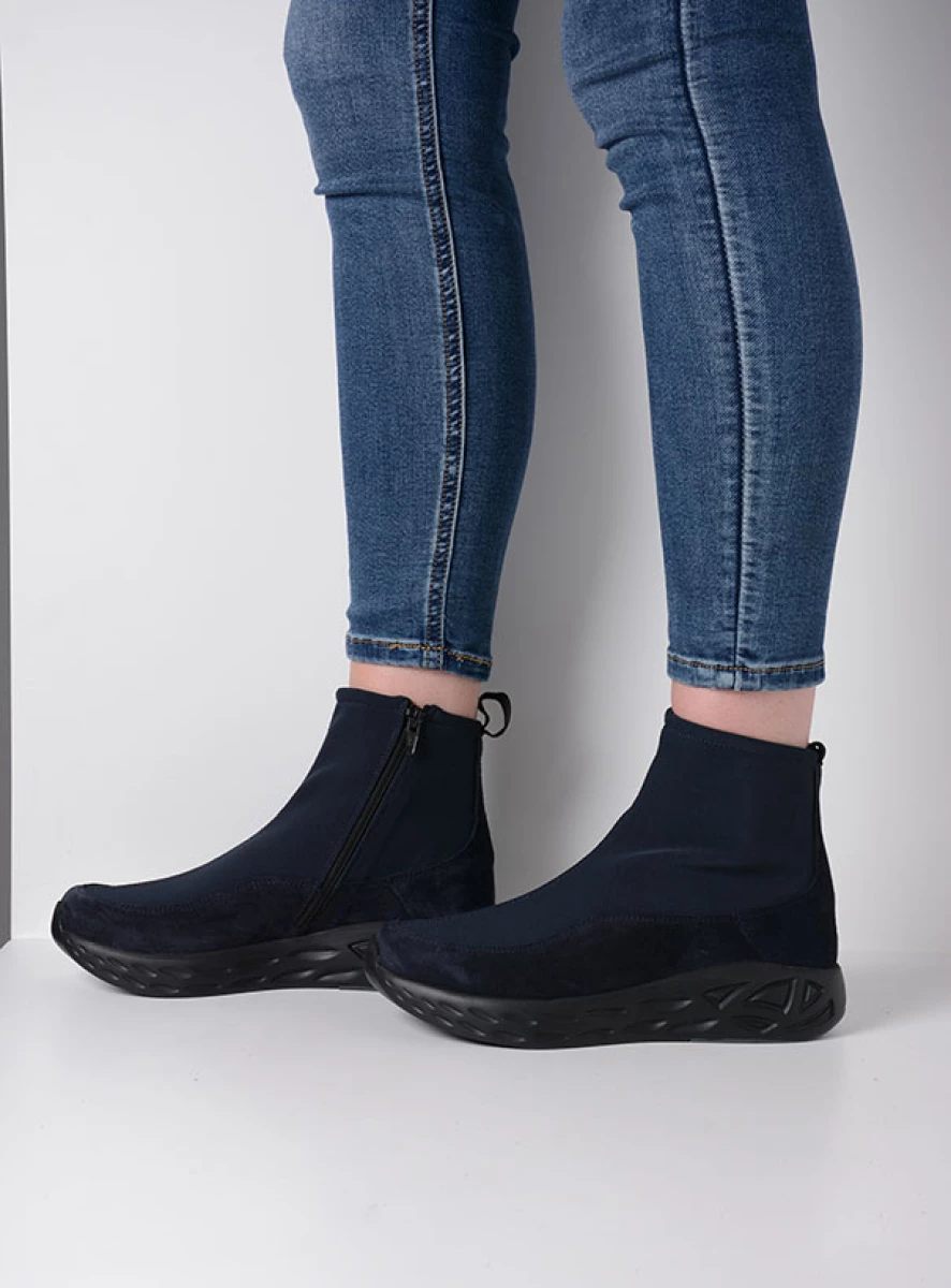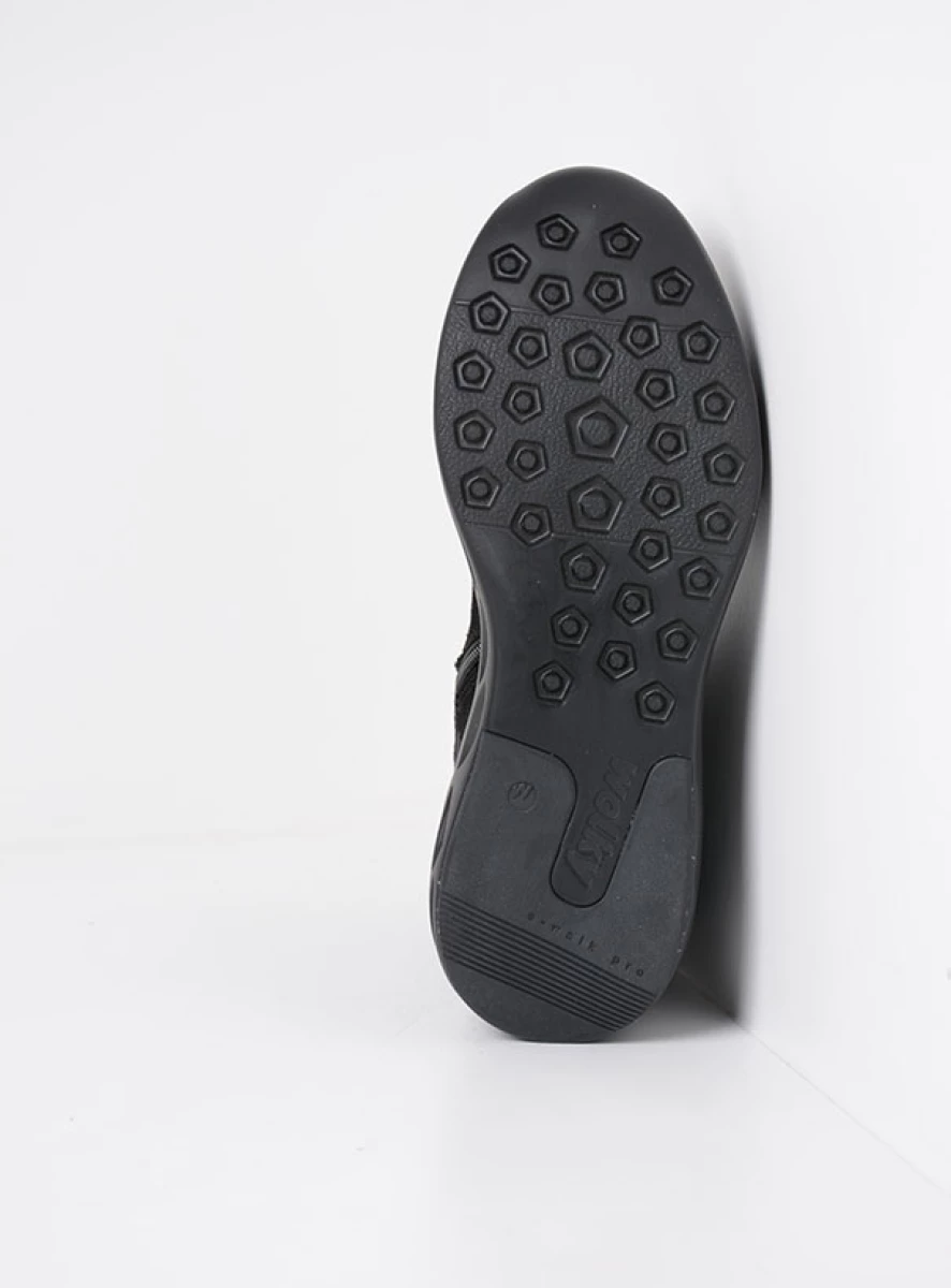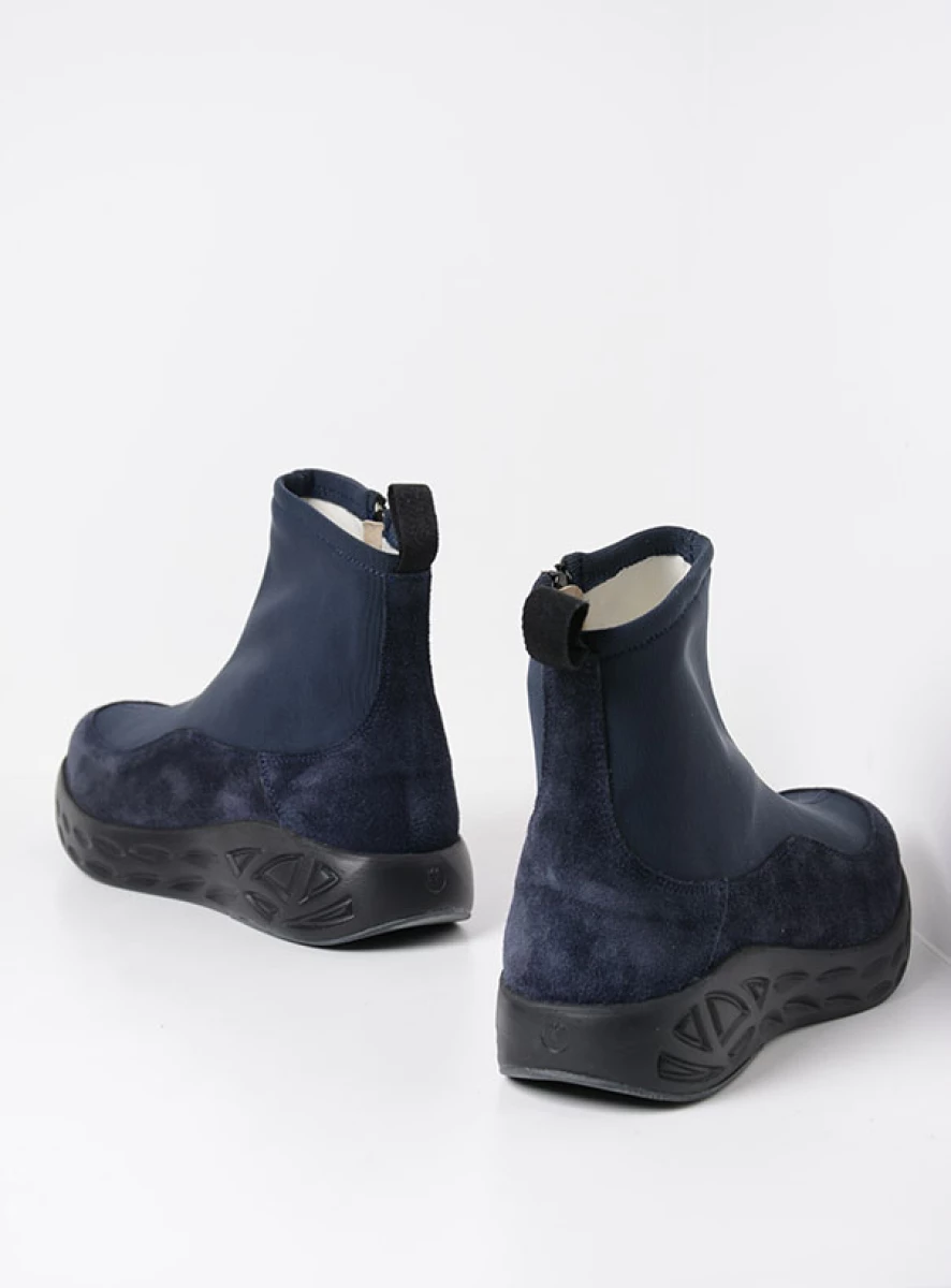Dieser Stretchboot passt wie angegossen und bietet Ihren Füßen den Halt, den sie brauchen. Die Sohle ist leicht und superdämpfend: ideal für Frauen mit Fersensporn – aber auch für alle anderen, da die Füße weniger schnell ermüden. Im vorderen Bereich steigt die Sohle leicht an. Die hochgewölbte Zehenkappe, die Sie bei Wolky häufig sehen, hat ihren Grund: Sie bewirkt, dass sich Ihre Füße mühelos abrollen, was das Laufen erleichtert. Das Obermaterial besteht größtenteils aus Stretchmaterial, das sich wunderbar an den Fuß und den Knöchel anpasst. Um dem Fuß den perfekten Halt zu geben und ihn an Ort und Stelle zu halten, besteht die Basis, die „Schale“, in der Ihr Fuß ruht, aus einer soliden Schicht aus Veloursleder. Ein weiteres Plus: Der Rebound S2F ist auf einem runden Leisten gefertigt, sodass die Zehen viel Platz haben. Das Ergebnis: ein ausgefallener, raffinierter Boot mit einer herrlichen Passform, in dem man stundenlang laufen kann. Eine ideale Kombination sowohl zur Hose als auch zum Kleid!