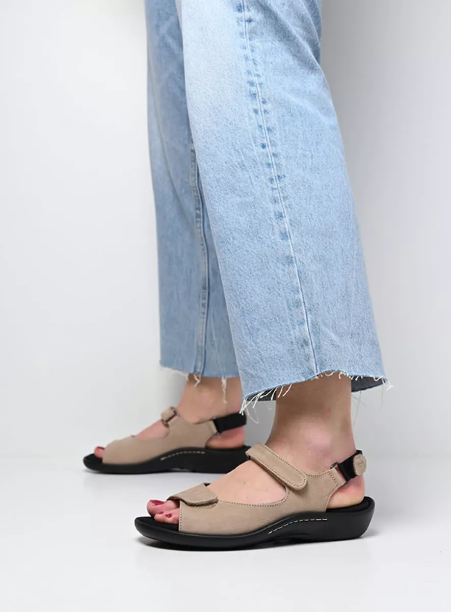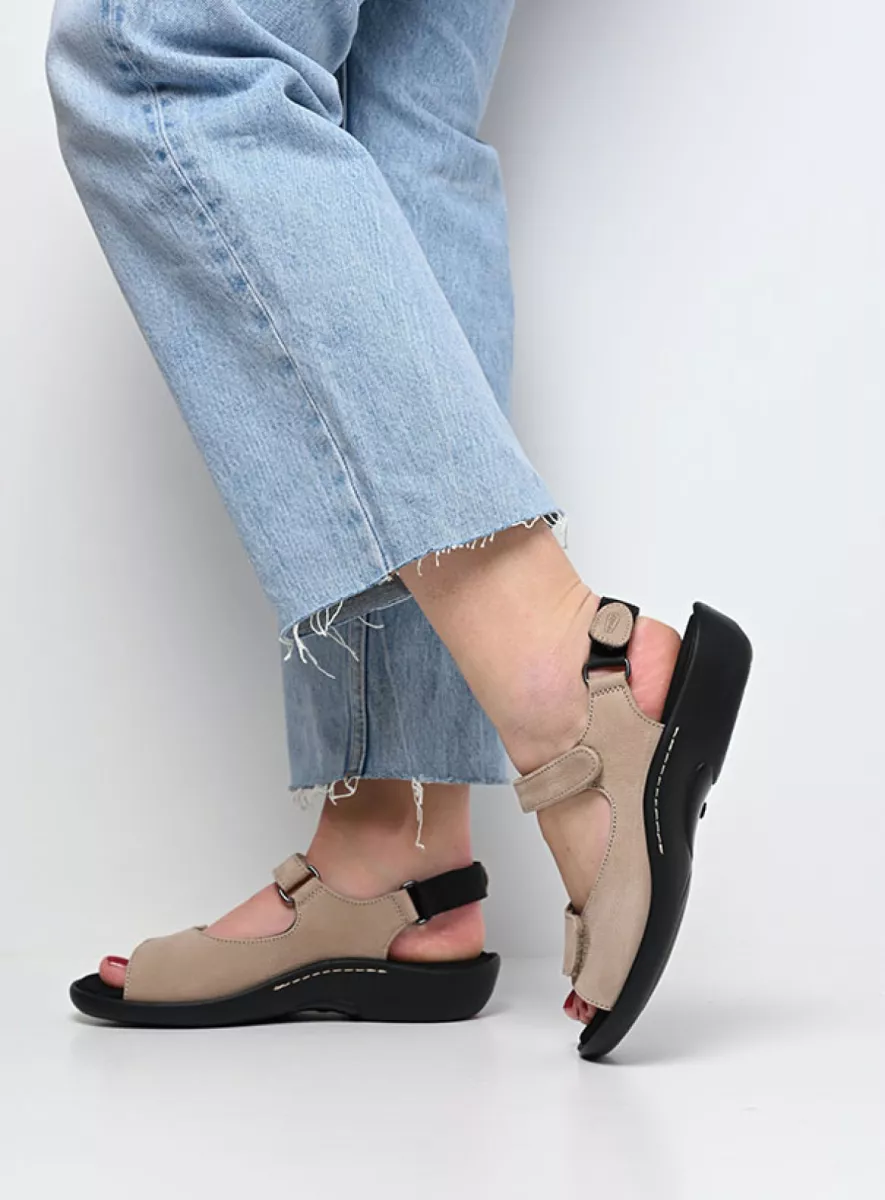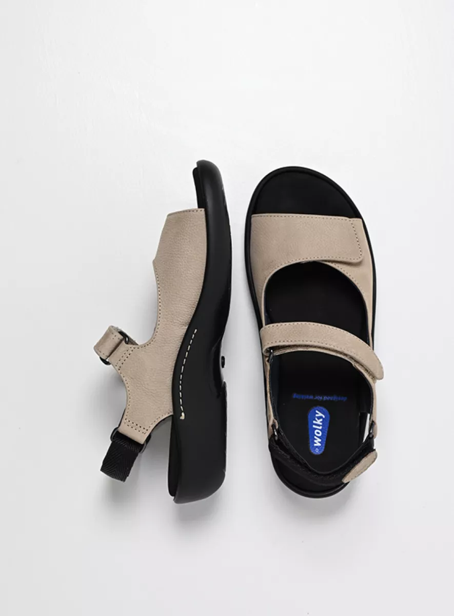 Suchen Sie eine robuste, bequeme Sandale, die Ihnen den ganzen Tag über optimalen Halt bietet? Dann ist Wolkys Salvia genau der Richtige für Sie. Diese klassische Sandale ist an sage und schreibe drei Stellen mit Klettverschluss verstellbar: am Vorfuß, am Rist und an der Ferse. So können Sie die Sandale optimal an Ihre Füße anpassen. Der Einstieg ist ganz einfach, wenn Sie den Fersenriemen kurz lockern. Auch eine gute Nachricht für Frauen mit Einlegesohlen: Sie können das herausnehmbare Fußbett gegen Ihre eigenen Schuheinlagen austauschen. Möchten Sie so einen, aber lieber ohne Fersenriemen? Schauen Sie sich den Nepeta an.