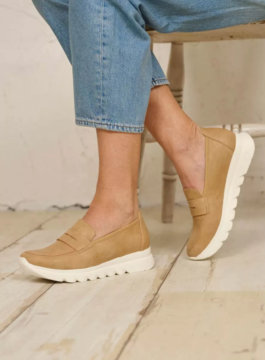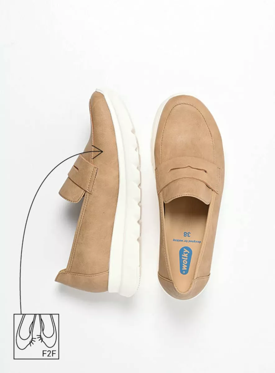 Es ist weder ein Sneaker noch ein Loafer – es ist ein Snoafer! Der Snoafer F2F von Wolky vereint das Beste von beiden: den Look eines Loafers mit dem Halt, der Dämpfung und dem Laufvergnügen eines Sneakers. Der Snoafer F2F ist außerdem mit dem patentierten Fit2Feet-System von Wolky ausgestattet. Dadurch kann sich der Schuh genau an den Stellen – insbesondere am Großzehengrundgelenk – mitdehnen, an denen viele Frauen lästige und schmerzhafte Knubbel oder sogar einen Hallux valgus haben. Die Sohle ist aus leichtem, dämpfendem EVA gefertigt. Dadurch ermüden Ihre Füße weniger schnell. Das anatomisch geformte Fußbett ist herausnehmbar. Ideal für Frauen mit eigenen Sohlen. Mit seiner elastischen Umrandung passt sich der Snoafer F2F perfekt an Ihren Fuß an. Sehen Sie sich schon darin herumlaufen?