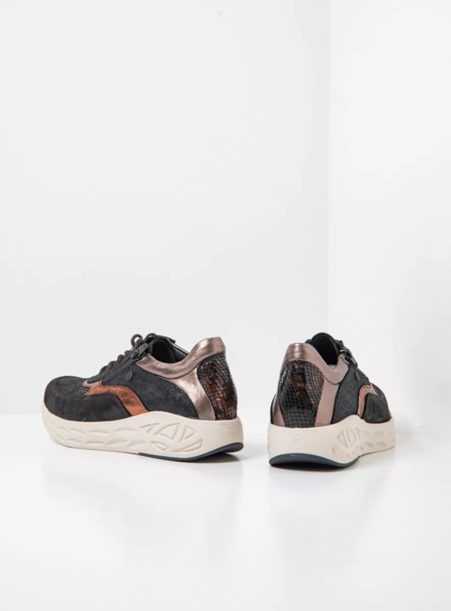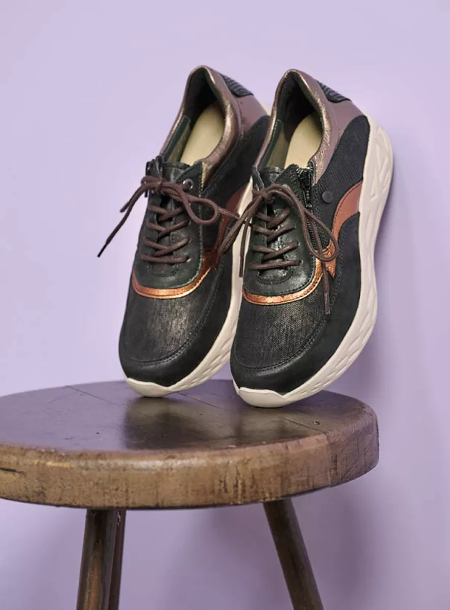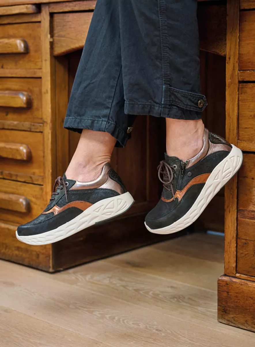Mit diesem sportlichen Sneaker sind Sie immer gut zu Fuß! Die Sohle ist leicht und superdämpfend: ideal für Frauen mit Fersensporn – aber auch für alle anderen, da die Füße weniger schnell ermüden. Im vorderen Bereich steigt sie leicht an. Die hochgewölbte Zehenkappe, die Sie bei Wolky häufig sehen, hat ihren Grund: Sie bewirkt, dass sich Ihre Füße mühelos abrollen, was das Laufen erleichtert. Dies wird durch das Vorderblatt aus Stretchmaterial noch verstärkt: Auch hochstehende Zehen finden im Vitality S2F ausreichend Platz. Eine gute Nachricht für Frauen mit Einlegesohlen: Dieser Sneaker ist mit einem herausnehmbaren anatomisch geformten Fußbett ausgestattet. Ein weiteres Plus: Der Vitality S2F ist auf einem runden Leisten gefertigt, sodass die Zehen viel Platz haben. Der Reißverschluss an der Außenseite verleiht diesem Sneaker nicht nur einen verspielten Touch, sondern erleichtert auch das schnelle Ein- und Aussteigen. Ideal!