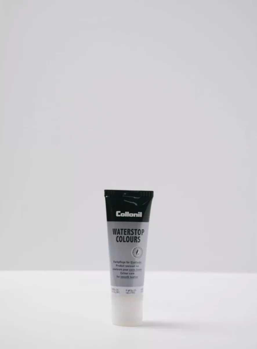 Waterstop ist eine farblose Pflegecreme mit Imprägnierwirkung – geeignet für alle Glattleder und High-Tex-Materialien.