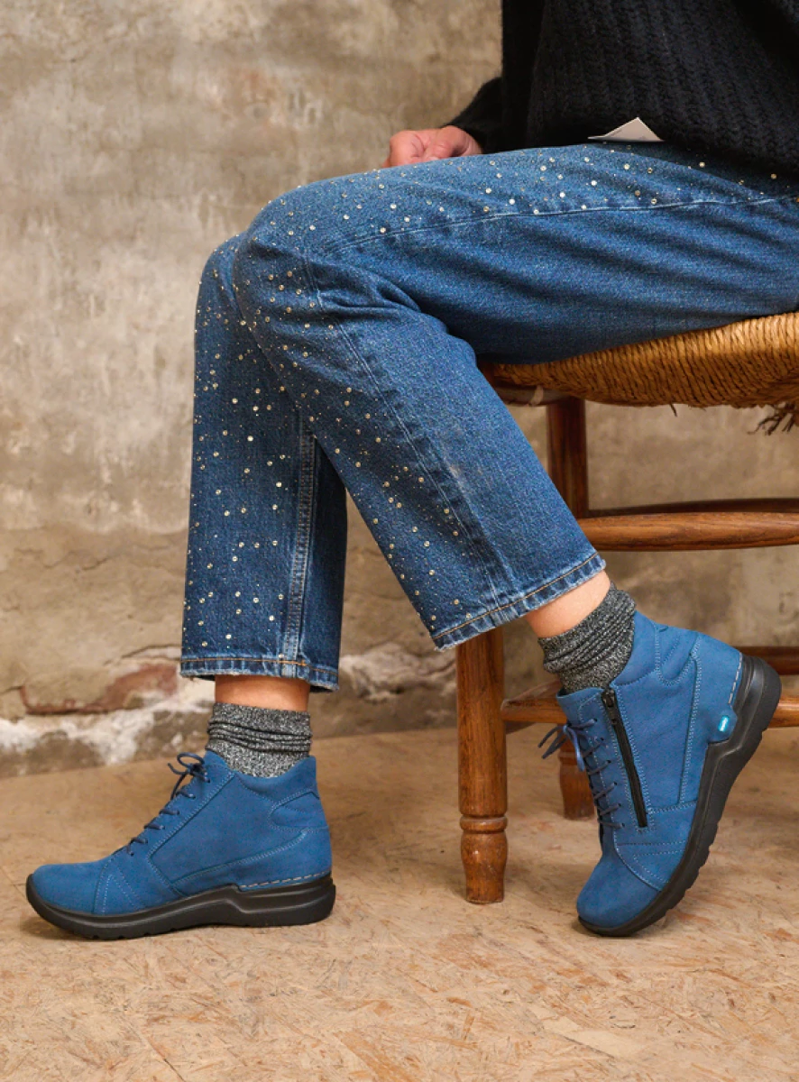Wolkys Why ist ein echter Favorit aus unserer Kollektion. Dieser knöchelhohe Schnürschuh hat eine leichte PU-Sohle, die für zusätzliche Dämpfung sorgt. Dank der hochgezogenen Nase sorgt der Schnürschuh für ein leichteres Abrollen des Fußes, was Ihrem Laufkomfort sehr förderlich ist. Der Why kombiniert Reißverschluss und Schnürsenkel und ist daher leicht an- und auszuziehen. Perfekt mit den tollsten Outfits zu kombinieren!