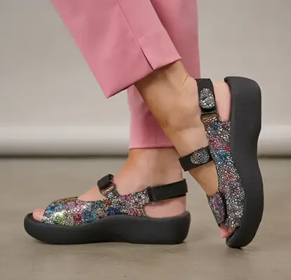 Sie möchten auch im Sommer nicht auf Ihre eigenen Einlagen verzichten? Dann sind unsere Sandalen mit Wechselfußbett die ideale Lösung. Diese haben wir speziell entwickelt, damit auch Nutzerinnen orthopädischer Einlagen das herrlich luftige Tragegefühl modischer Sandalen genießen können. Entdecken Sie die Wolky-Sandalen für Einlagen!